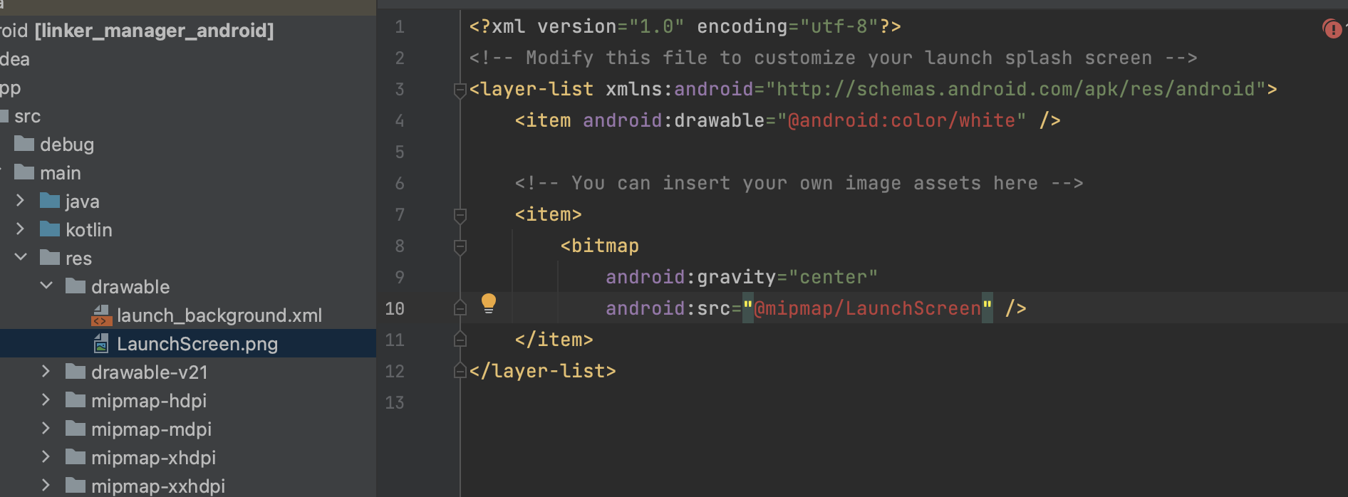 1. android/app/src/main/res/drawable/launch_background.xml 파일을 생성합니다.