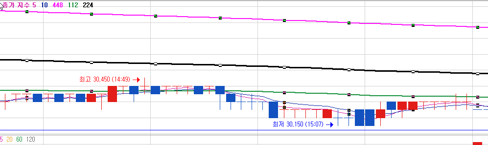 *현재 그림에서 5일선 10일선까지는 넘었고 112일선을 왔다갔다하는상태