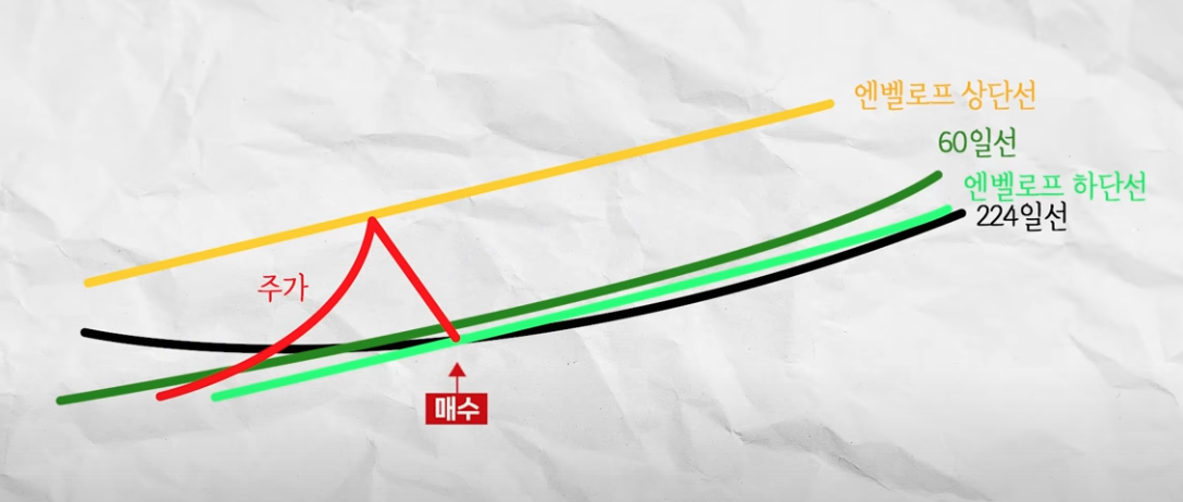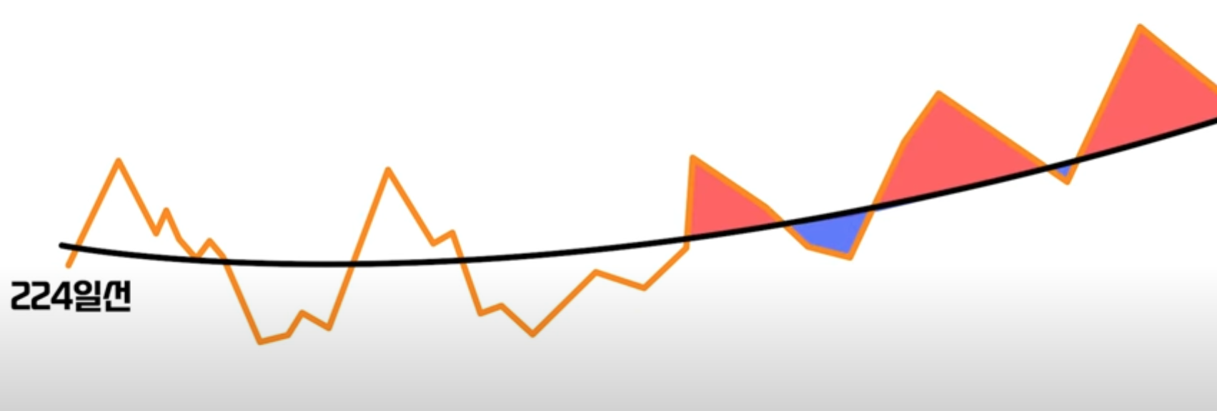 주가가 224일선 위에있을때 ( 우상향하는 상황에서 ).