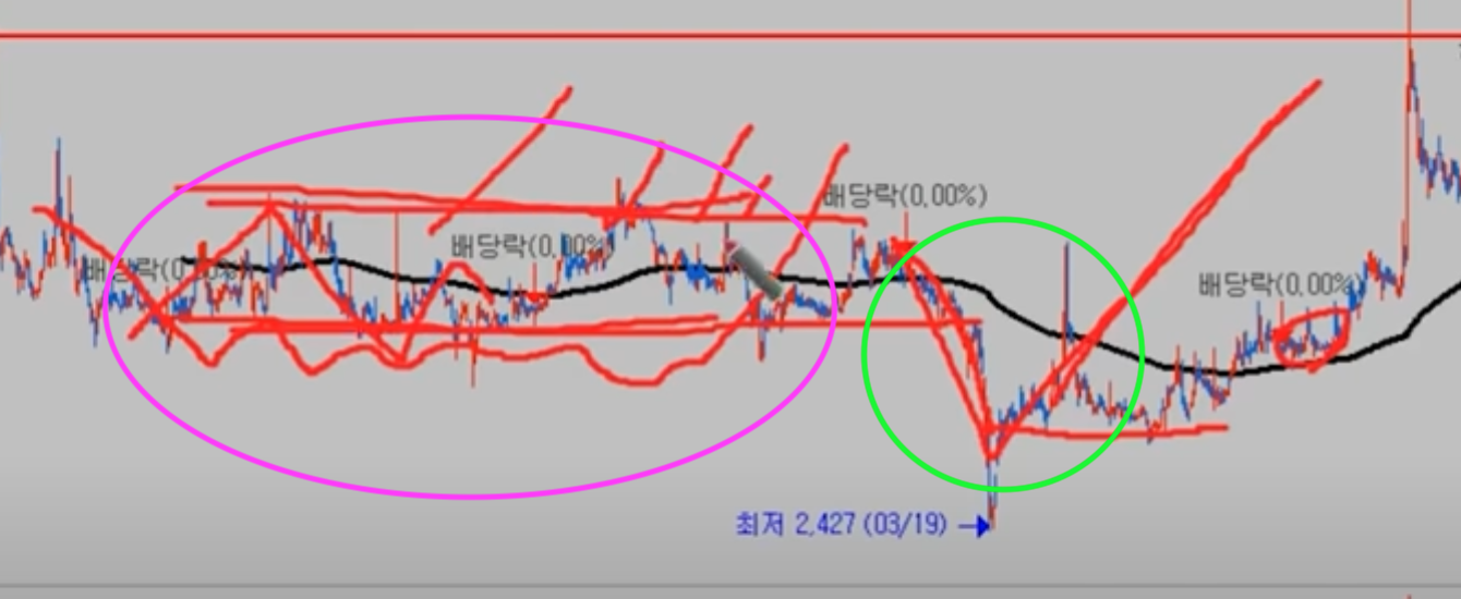 주가가 224일선 아래에 있을때 ( 우하향하는 상황에서 )