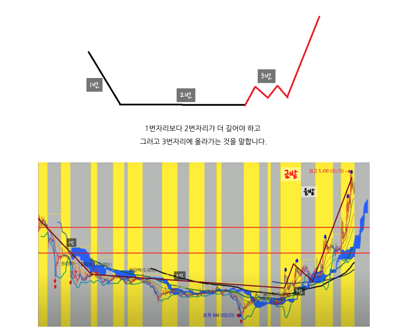 ==> 만약 224일선부근 + 구름대위에 + 은밭이면 잡아도된다.