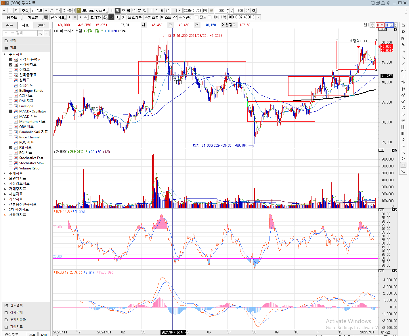 관찰 포인트 1 : 박스권이 224일선위에 형성되는주식을 찾아야한다.