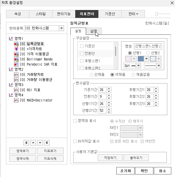 차트추가 : MTS 기준. , 차트에서 오른쪽마우스 > 지표추가 > 채널지표 > 일목균형표