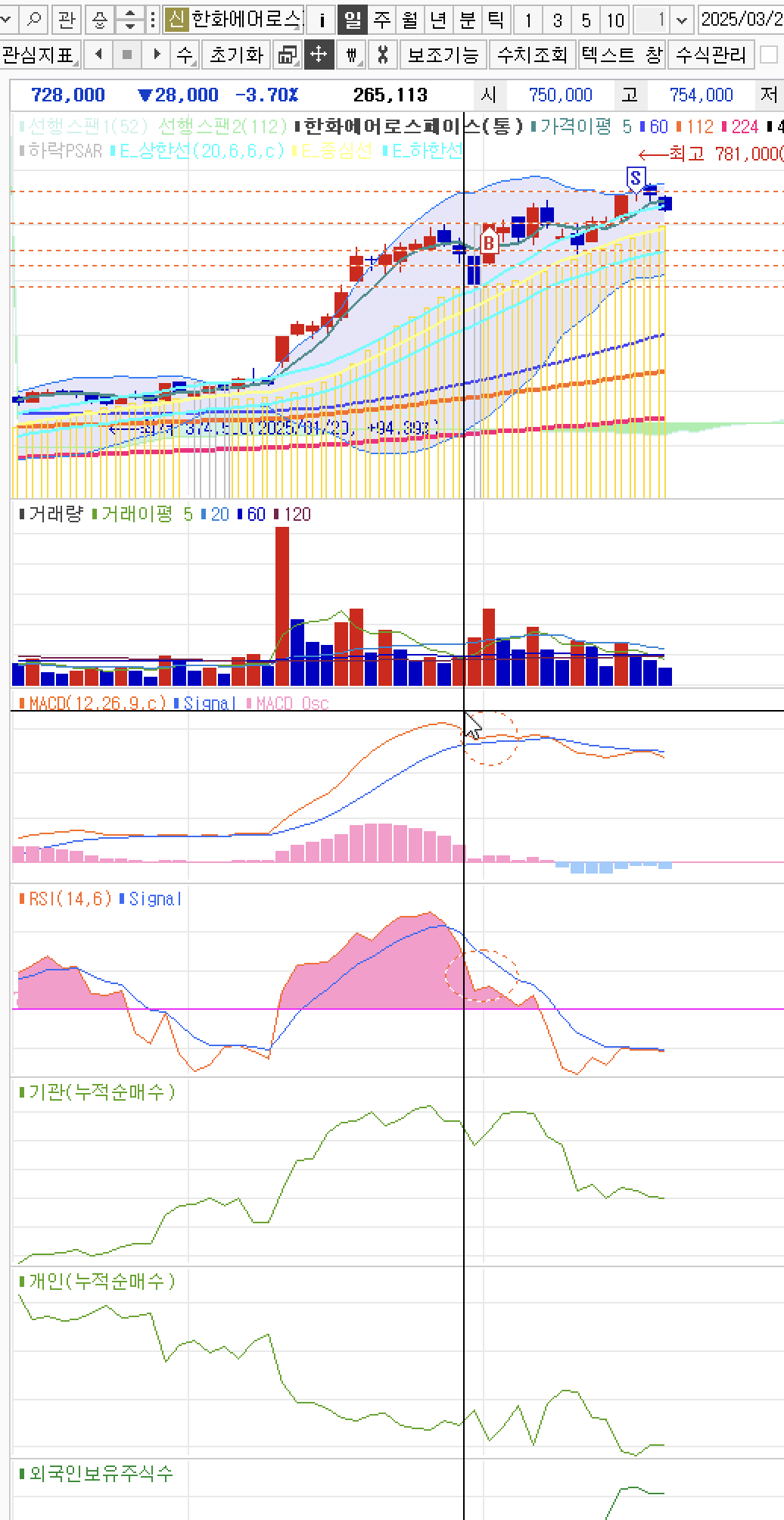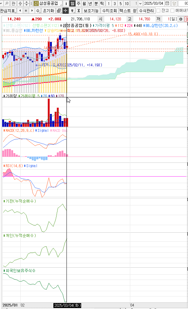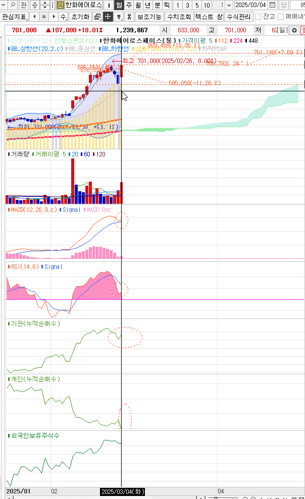 - 외국인및 기관이 매도를 많이함 2025.03.04.
