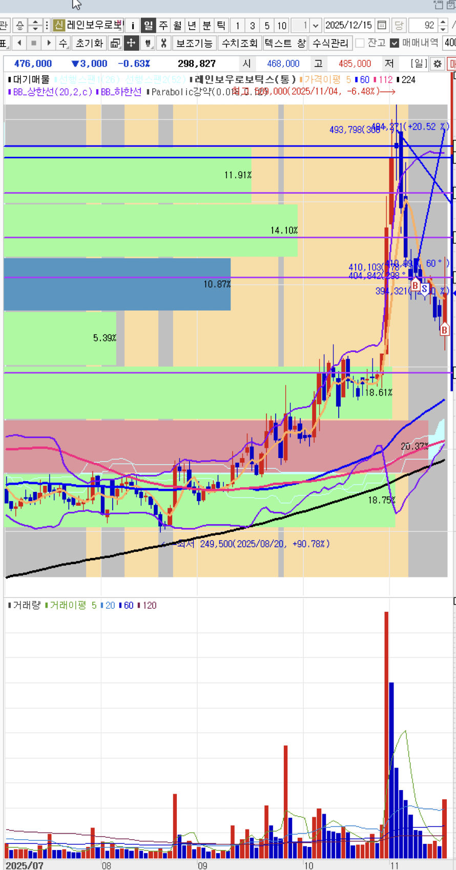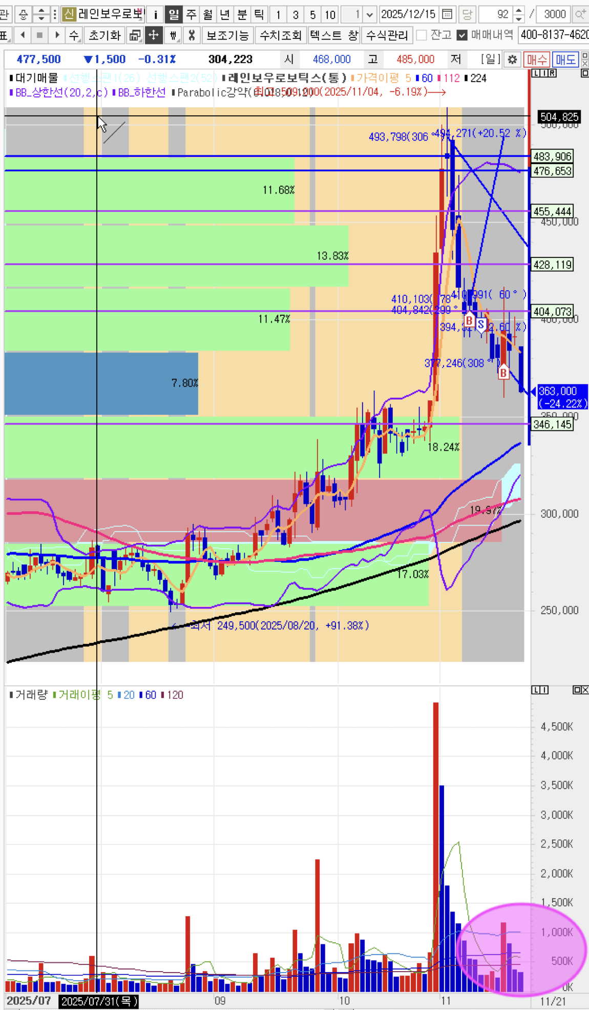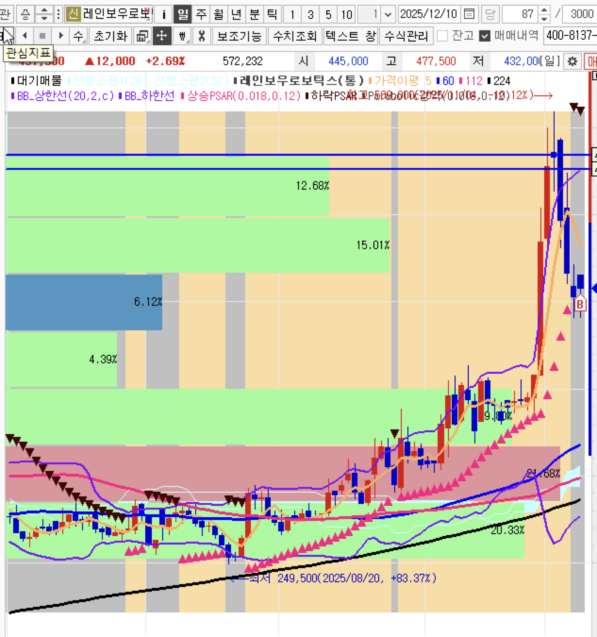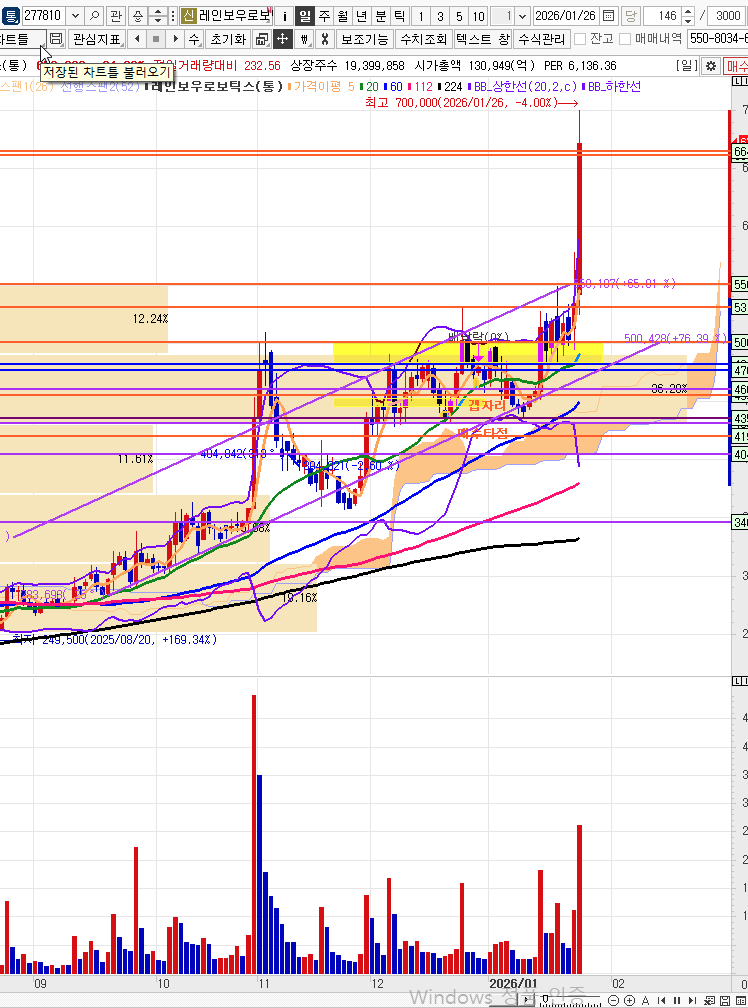 레인보우로보틱스, 미친 가격이와도 내것이아니다라고판단하고 매도진행한다.