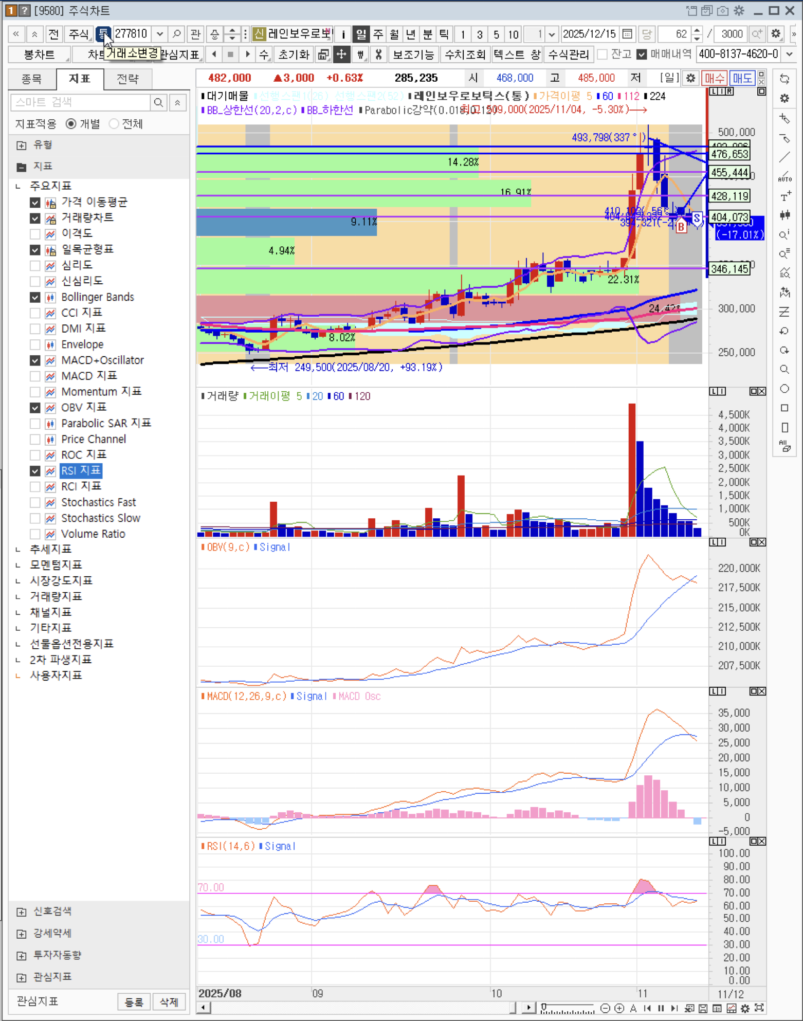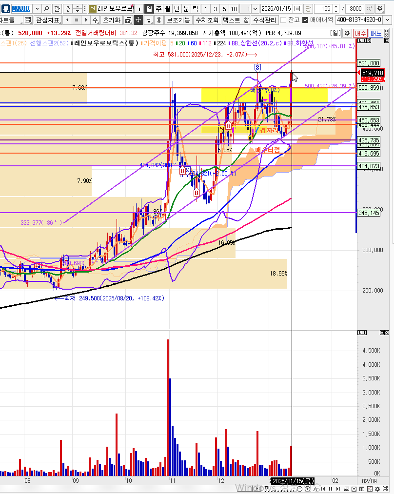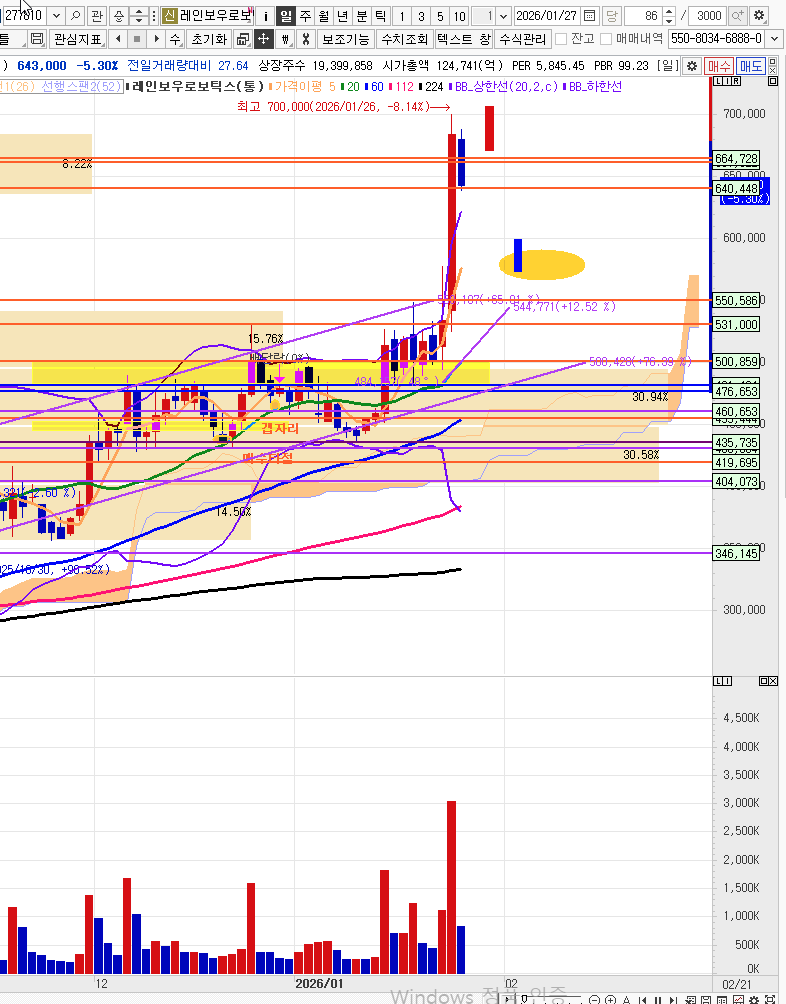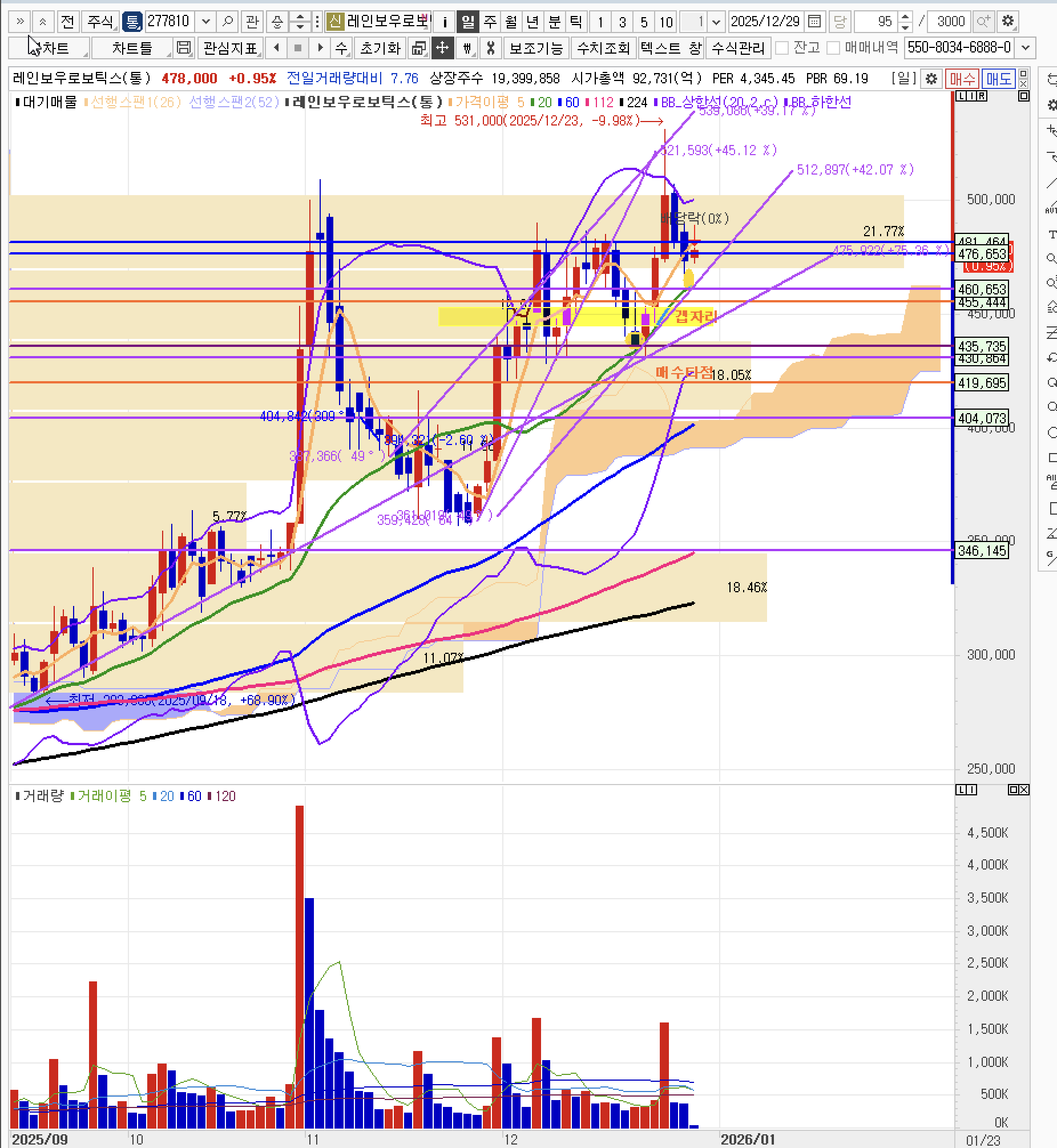 - 레인보우로보틱스 장중 530,000원까지 진행 > 525,000원에 매도
