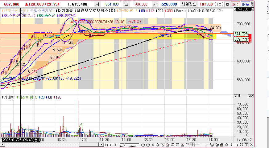 - 다른 로봇주가 조정받는 날이지만, 레인보우가 상승이커서 크게 빠지는것뿐 대세에 영향없다.