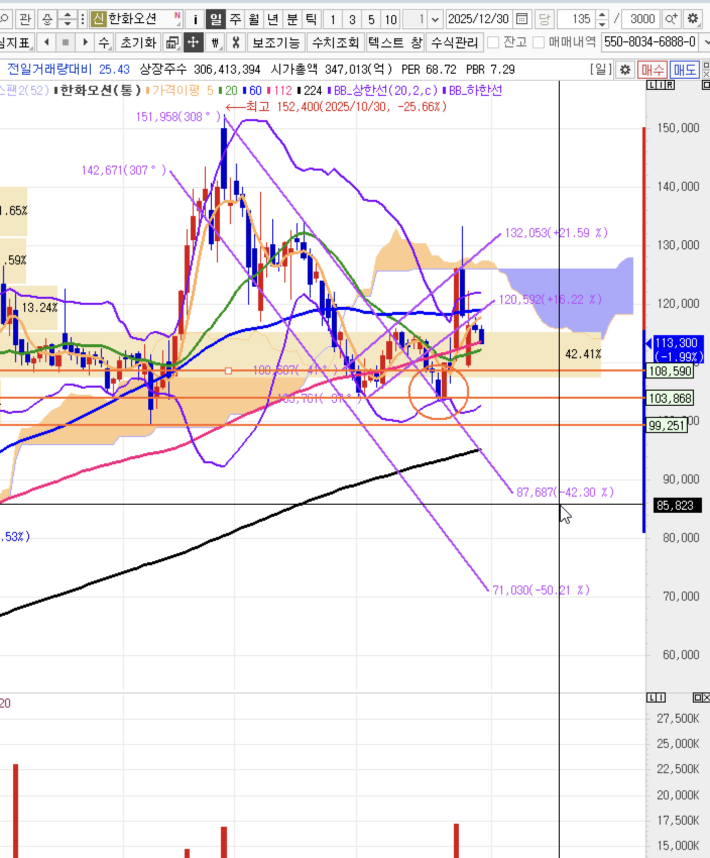 - 한화오션 미국 황금함대 제조관련 트럼프 발언 2025.12.23 > 104,500원에 잡은 물량 정리 22%수익