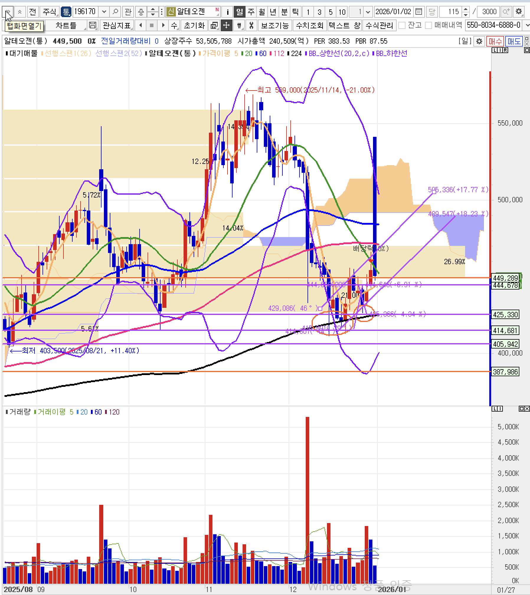 - 최근 449,200원을 뚫으면 저항 매물대를 뚫는것이기에 의미있다.