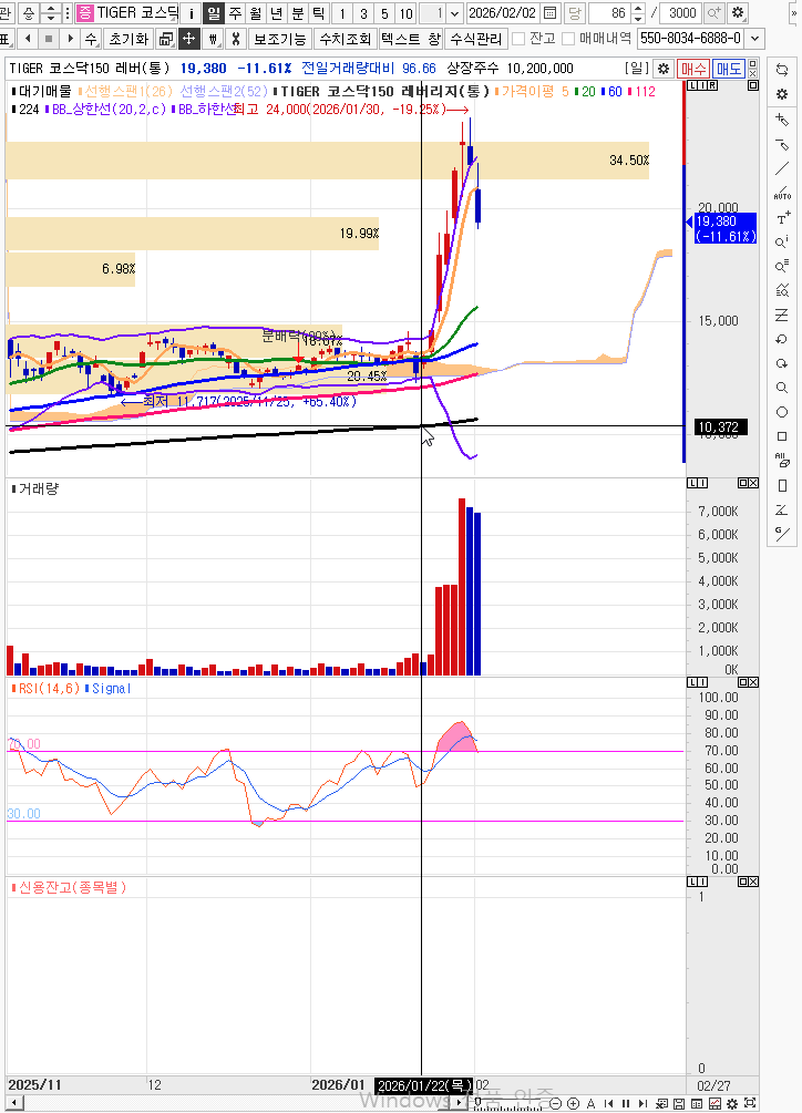 코스닥 ETF 150 이 정부정책 발표와함께 상승기조를 진행하고있다. 2026.01.22일부터